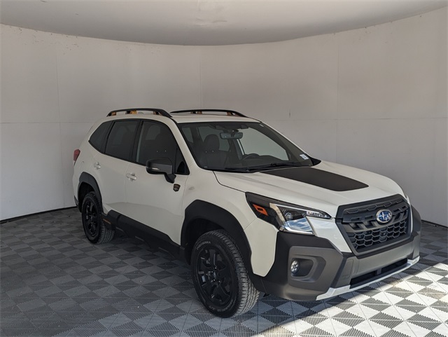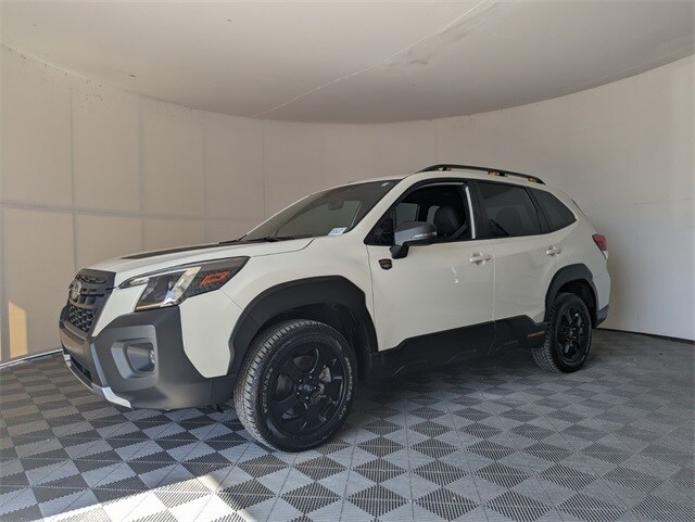 Crystal White Pearl 2023 Subaru Forester Wilderness 2.5L 4-Cylinder DOHC 16V Lineartronic CVT AWD 152 Point Certified Pre-Owned Inspection.