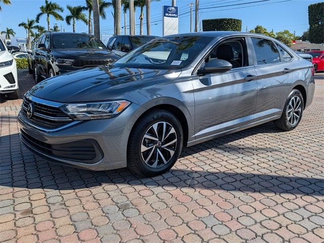 2024 Volkswagen Jetta 1.5T S Platinum Gray Metallic CARFAX One-Owner. Clean CARFAX. Certified. FWD 6-Speed Manual 1.5L I-4 DI DOHC Turbocharged Titan Black w/Cloth Seat Trim.
