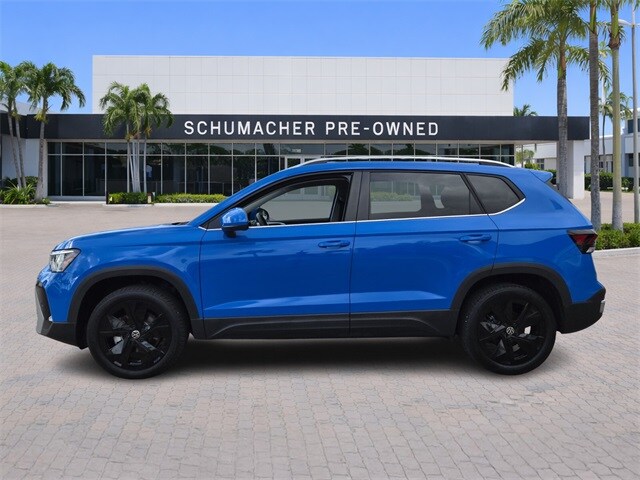 2025 Volkswagen Taos 1.5T SE Cornflower Blue CARFAX One-Owner. Clean CARFAX. Certified. FWD 8-Speed Automatic with Tiptronic 1.5L I4 Turbocharged DOHC 16V LEV3-SULEV30 174hp **ONE OWNER**, **VW CERTIFIED**, **CLEAN CARFAX**, **PURCHASED AND SERVICED AT SCHUMACHER**, **LOCAL TRADE**, **FLORIDA CAR**, New Vehicle Incentives available.