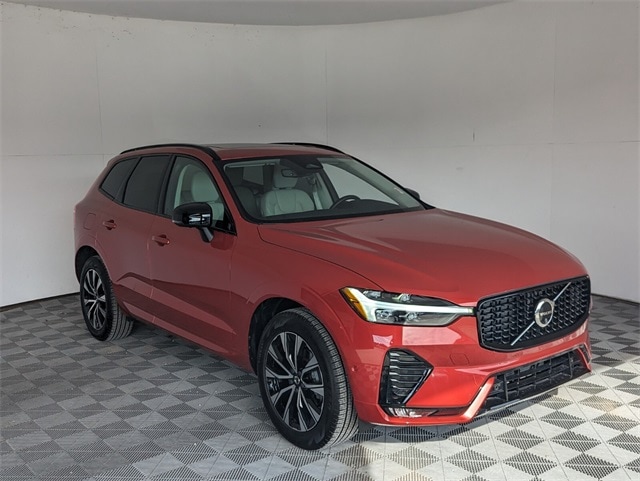 Fusion Red Metallic 2025 Volvo XC60 B5 Plus AWD Automatic with Geartronic 2.0L I4 Turbocharged DOHC 16V LEV3-ULEV70 AWD, 4-Wheel Disc Brakes, ABS brakes, Active Cruise Control, Alloy wheels, Anti-whiplash front head restraints, Dual front impact airbags, Dual front side impact airbags, Electronic Stability Control, Front anti-roll bar, Front dual zone A/C, Heated door mirrors, Heated Front Bucket Seats, Heated front seats, Illuminated entry, Low tire pressure warning, Occupant sensing airbag, Overhead airbag, Power Liftgate, Power moonroof, Rear anti-roll bar, Remote keyless entry, Traction control.
