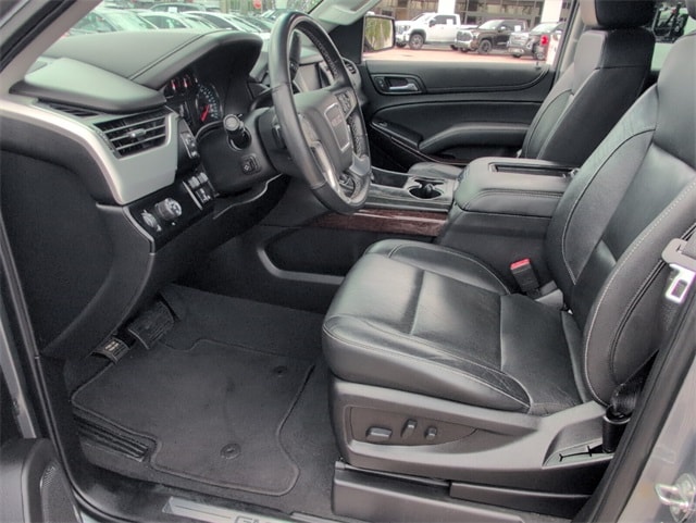 2019 GMC Yukon SLT Satin Steel Metallic CARFAX One-Owner. Clean CARFAX. RWD 6-Speed Automatic Electronic with Overdrive EcoTec3 5.3L V8 3.42 Rear Axle Ratio, 4-Wheel Antilock Disc Brakes, 5 Auxiliary 12-volt Power Outlets, Black Assist Steps w/Chrome Strip, Enhanced Driver Alert Package, Forward Collision Alert, Hands Free Power Programmable Rear Liftgate, HD Trailering Package, Heated Leather-Wrapped Steering Wheel, Inside Rear-View Auto-Dimming Mirror, Integrated Trailer Brake Controller, IntelliBeam Automatic High Beam On/Off, Lane Change Alert w/Side Blind Zone Alert, Lane Keep Assist w/Lane Departure Warning, Low Speed Forward Automatic Braking, Memory Package, Passive Entry System, Power Release 2nd Row 60/40 Split-Folding Bench Seat, Power Tilt & Telescopic Steering Column, Power-Adjustable Pedals For Accelerator & Brake, Preferred Equipment Group 4SA, Premium Smooth Ride Suspension Package, Push Button Keyless Start, Rear Cross Traffic Alert, Remote Keyless Entry, Standard Suspension Package, Universal Home Remote.