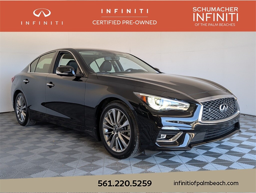 Experience INFINITI Luxury in West Palm Beach At INFINITI of the Palm Beaches, we are proud to offer a premium selection of new, Certified Pre-Owned (CPO), and used INFINITI vehiclesâ"including popular models like the INFINITI Q50, QX50, QX55, QX60, and QX80. Whether youâre looking for the latest INFINITI technology, a meticulously inspected CPO model with warranty benefits, or a quality pre-owned vehicle from other top brands, our team is committed to delivering a seamless and personalized car-buying experience to drivers across West Palm Beach, Wellington, Boca Raton, Jupiter, and Palm Beach Gardens. Enjoy premium features like INFINITI InTouchTM with Apple CarPlay® and Android AutoTM, ProPILOT AssistTM, luxurious interiors, and INFINITI Premium Careâ"three years of routine maintenance included on every new INFINITI purchase. With home and office delivery options and a commitment to concierge-level service, we make luxury ownership simple and convenient. Disclaimer â" INFINITI of the Palm Beaches May not represent actual vehicle. (Options, colors, trim, and body style may vary.) Advertised prices do not include tax, tag, title, dealer-installed accessories, or dealer fee. All rebates and incentives are applied and assigned to the dealer. Buyer must qualify for INFINITI Owner Loyalty Program eligibility: Must currently own or lease a model year 2013 or newer INFINITI to qualify for loyalty incentives on a new purchase or lease, OR Returning INFINITI must be either grounded, purchased by the customer, purchased by the retailer, or declared a total loss. All offers subject to credit approval and must finance through INFINITI Financial Services. Additional terms and residency restrictions may apply. See dealer for complete details.