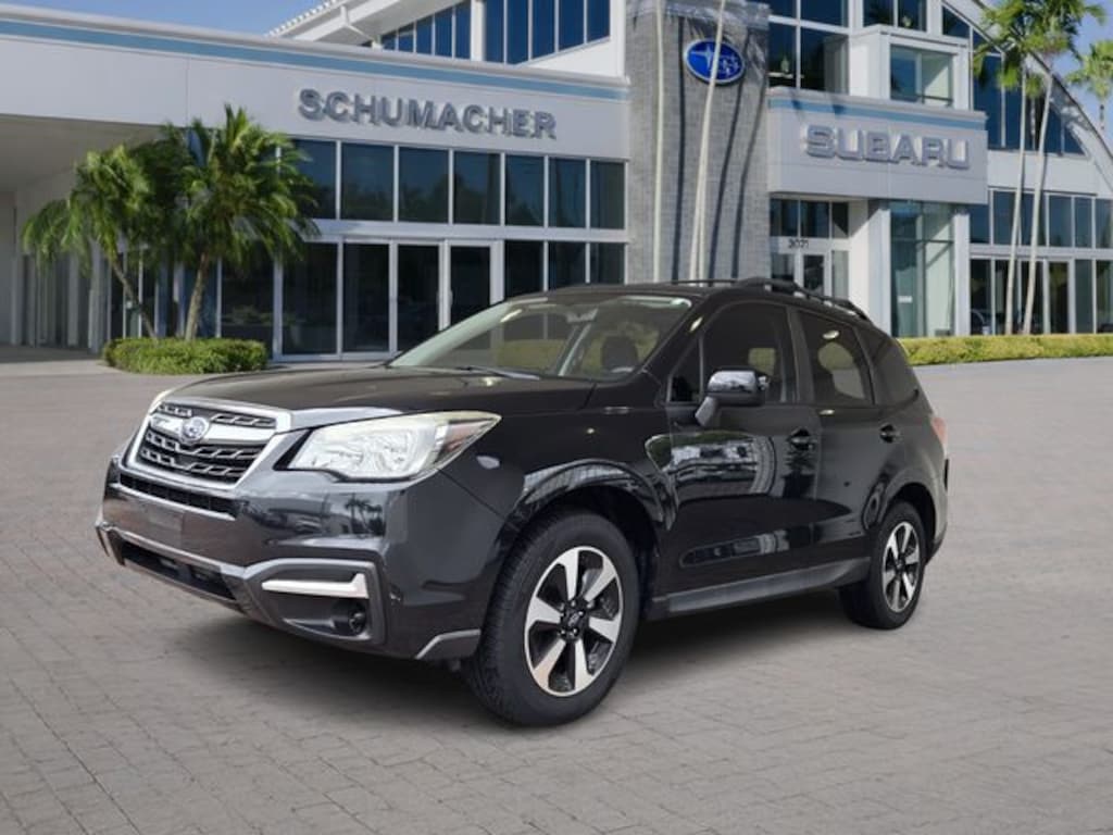 Crystal Black Silica 2018 Subaru Forester 2.5i Premium 2.5L 4-Cylinder DOHC 16V VVT Lineartronic CVT AWD Forester 2.5i Premium, 4D Sport Utility, 2.5L 4-Cylinder DOHC 16V VVT, Lineartronic CVT, AWD, Crystal Black Silica, Black Cloth, 18-inch Alloy Wheels, 3.70 Axle Ratio, 4-Wheel Disc Brakes, 6 Speakers, ABS brakes, Aero Crossbar Set, Air Conditioning, All-Weather Floor Mats, Alloy Wheel Locks, AM/FM radio: SiriusXM, Automatic temperature control, Brake assist, Bumpers: body-color, Cargo Cover - Manual Rear Gate, Cargo Tray, CD player, Driver door bin, Driver vanity mirror, Dual front impact airbags, Dual front side impact airbags, Electronic Stability Control, Emergency communication system: STARLINK, Exterior Parking Camera Rear, Four wheel independent suspension, Front anti-roll bar, Front Bucket Seats, Front Center Armrest, Front reading lights, Illuminated entry, Knee airbag, Low tire pressure warning, Occupant sensing airbag, Outside temperature display, Overhead airbag, Overhead console, Panic alarm, Passenger door bin, Passenger vanity mirror, Power door mirrors, Power driver seat, Power moonroof, Power steering, Power windows, Radio data system, Radio: Subaru Starlink 7.0" Multimedia Plus System, Rear anti-roll bar, Rear seat center armrest, Rear window defroster, Rear window wiper, Remote keyless entry, Roof rack: rails only, Security system, Speed control, Split folding rear seat, Spoiler, Steering wheel mounted audio controls, Tachometer, Telescoping steering wheel, Tilt steering wheel, Traction control, Trip computer, Variably intermittent wipers.