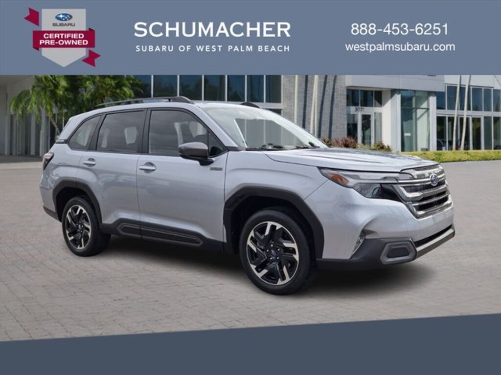 Ice Silver Metallic 2025 Subaru Forester Hybrid Limited 2.5L 4-Cylinder DOHC 16V Lineartronic CVT AWD 152 Point Certified Pre-Owned Inspection, harman/kardon® Speakers, Power driver seat, Power moonroof: Panoramic, Remote keyless entry.
