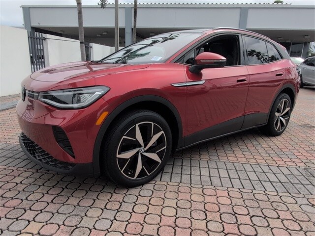 2023 Volkswagen ID.4 Pro S Red CARFAX One-Owner. Clean CARFAX. AWD Single-Speed Automatic Electric Motor Exterior Parking Camera Rear, Heated Front Seats, Navigation System, Perforated V-Tex Leatherette Seating Surfaces, Power Liftgate, Radio: Discover Pro Max w/12" Touchscreen Nav, Remote keyless entry, Wheels: 20" 5-Spoke 2-Tone Machined Alloy.